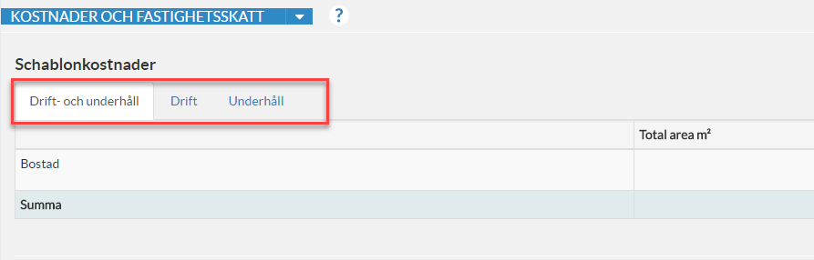 Kommersiella - Nu finns tre nya flikar för inmatning av schablonkostnader