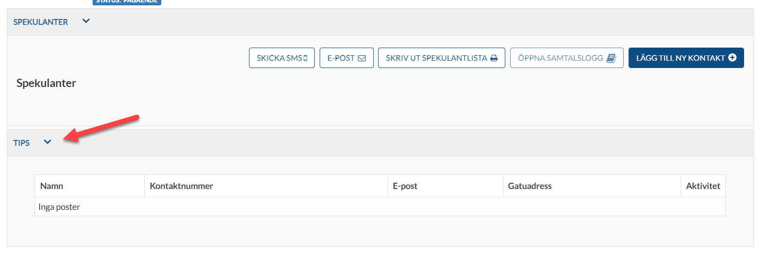Intresseanmälan som görs på en bostad har tidigare endast kommit som ett mail till mäklaren. Nu hamnar intressenten även under fliken "Tips" på objektet. Där kan mäklaren sen välja om man vill flytta upp personen som spekulant.