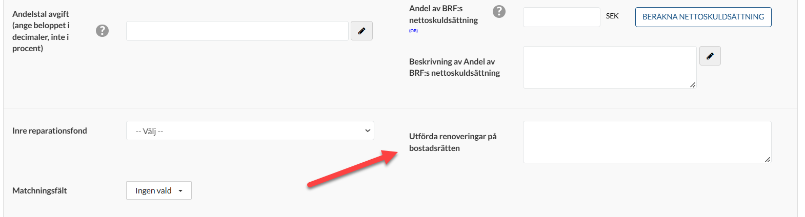 Användare har upplevt det svårt att hitta rätt fält för att fylla i renoveringar som gjorts i den specifika bostadsrätten. Tanken är att det här fältet ska användas till det framöver.