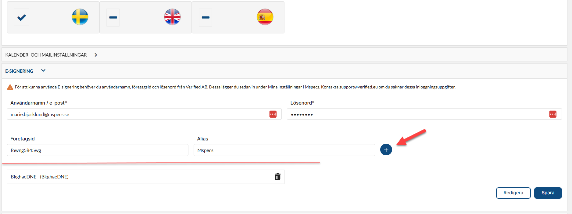 • Den som är admin i licensen aktiverar tvåfaktorsautentisering under Företagsinställningar.